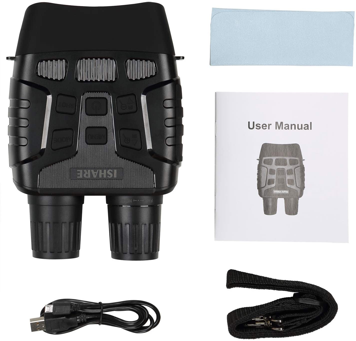 LONG DISTANCE VIEWING RANGE: With outstanding optical clarity, this night vision binoculars for adults enable you to observe targets quickly in total darkness and the range up to 984ft/300m.7 IR illumination levels are easily switchable while viewing. Buttons are readily accessible by fingers of both hands while holding the unit. Manual focus via left lens is straightforward - quickly adjust to get crisp image or video.