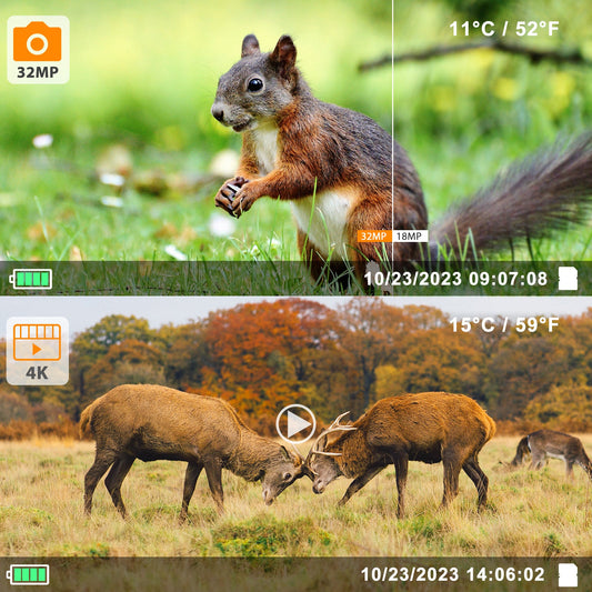4K 2160P   32MP photo 4K 2160P Full HD video Trail camera with audio and motion detector Night vision max. distance up to 100ft, 0.1s trigger speed, Waterproof IP66 | T326 GreenNormaler Preis Von €85,99Normaler PreisGrundpreis pro€149,99Verkaufspreis Von €85,99Ausverkauft
