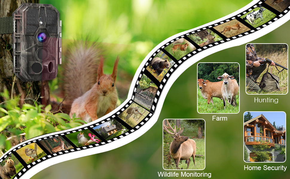 The trail camera captures 32 Mega Pixel crystal images and full HD 1296P videos,providing more high-quality details during daytime(black and white at night).You could easily see the vivid world of wildlife, Video in H264 MP4 format which can be easy shared to Youtube or Facebook or display in most player.