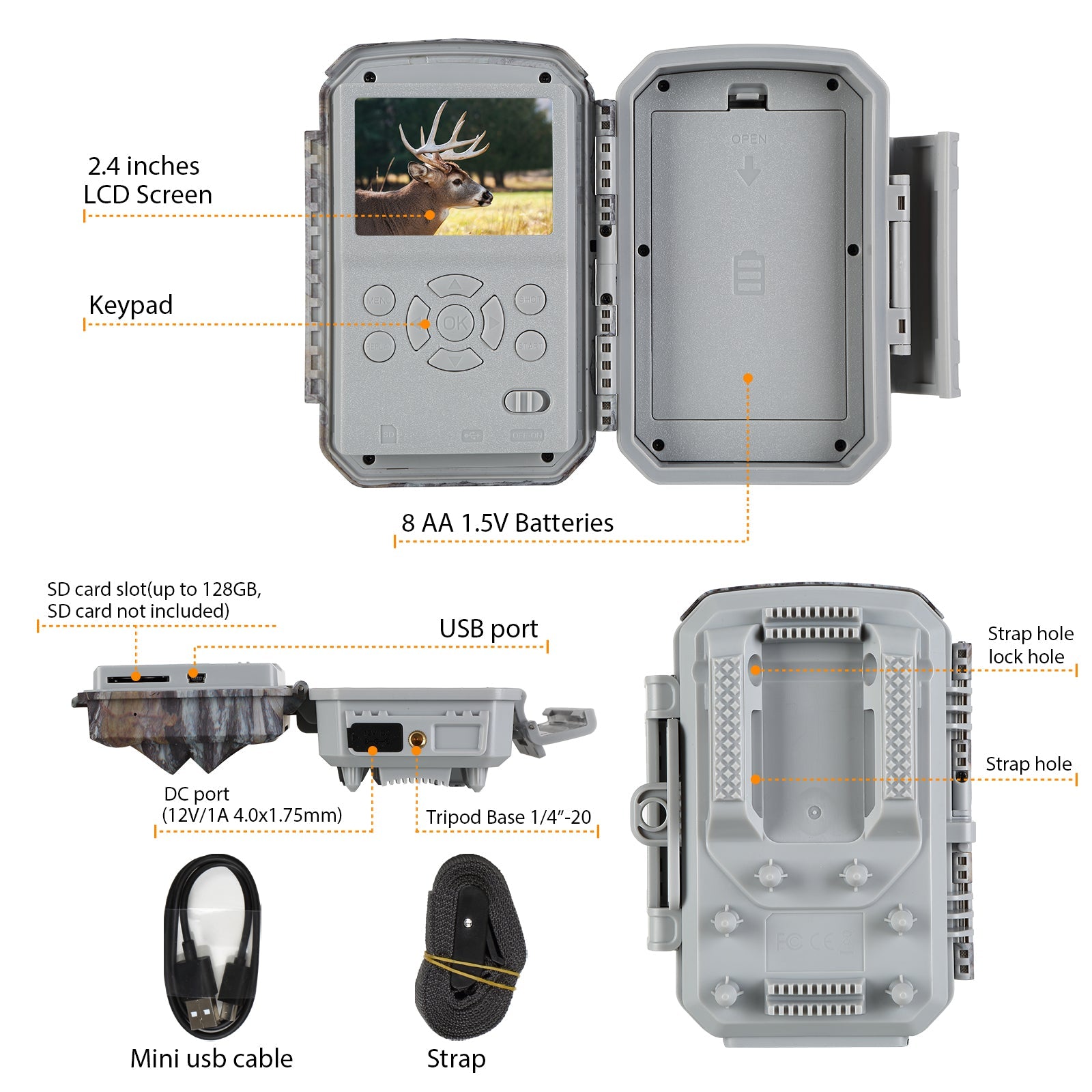 Mini-USB, Standard-size SD card holder,