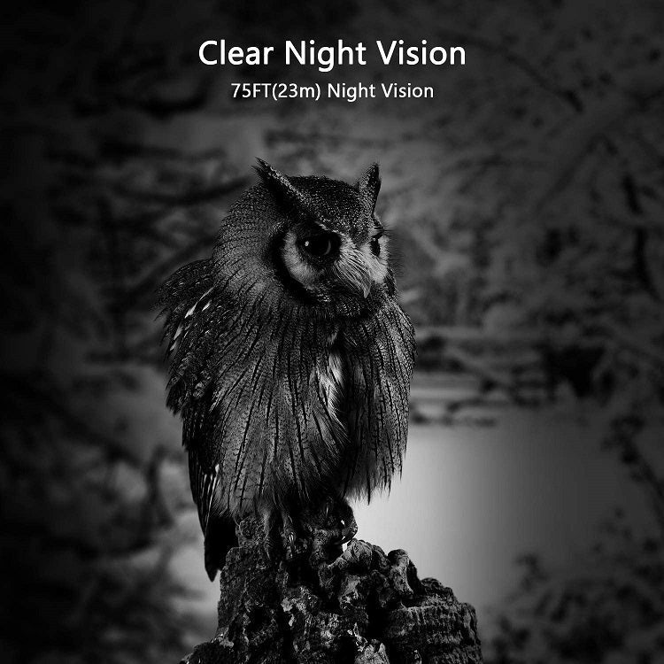 Adopted upgraded 940nm infrared technology keeps your camera imperceptible at night, smart infrared illumination technology, advanced optical lens, image sensor combined to ensure clear night vision(Black and White). No blur and no wash-out. Built in 36pcs high efficiency infrared LEDs, the night vision distance can up to 75FT/22M.