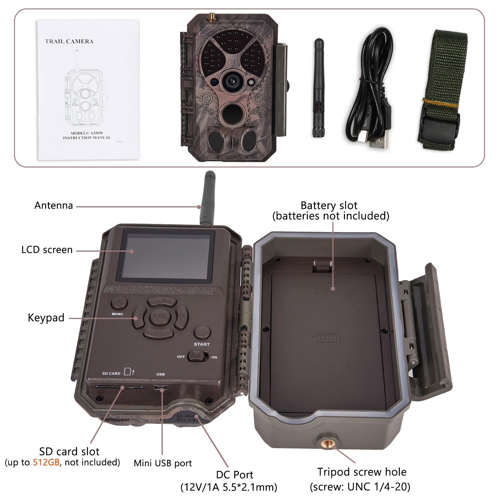 Memory: SD, SDHC or SDXC Standard memory card(Not included), max capacity 512GB